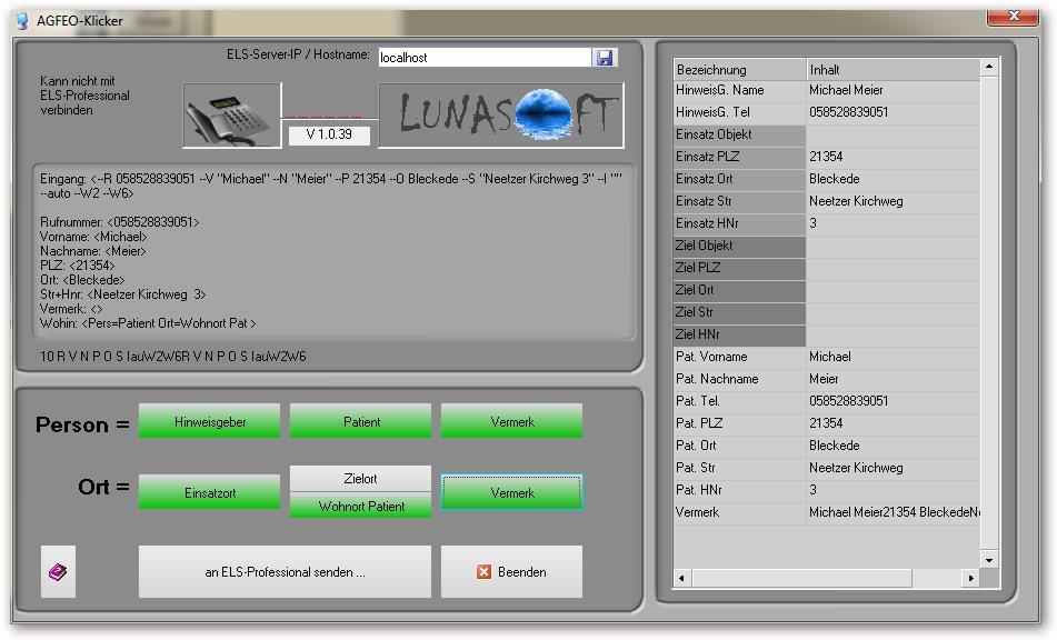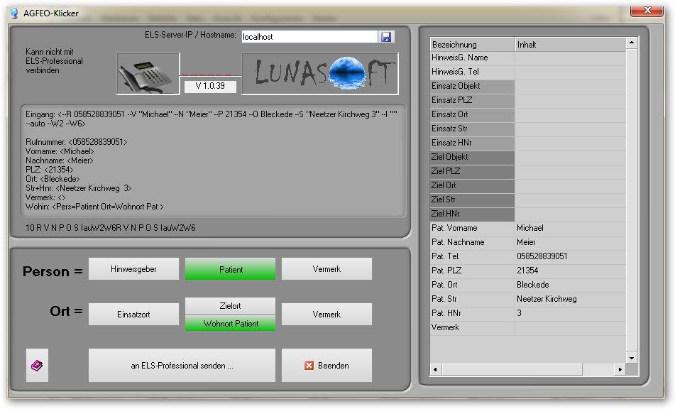 Wird der AGFEO-Klicker mit dem Parameter - -auto aufgerufen, so übergibt er die Daten an ELS-Professional und beendet sich auch gleich wieder.
