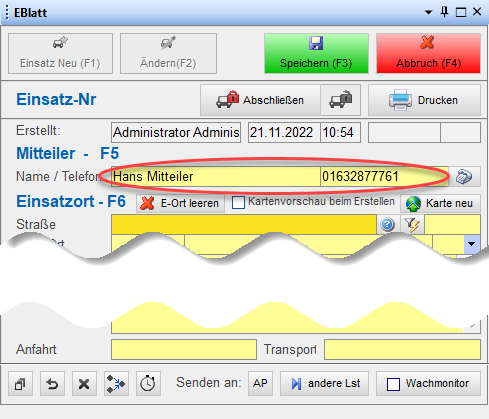 Verfügt Ihre AGFEO-Telefonanlage über eine Anbindung an eine Datenbank, so können in ELS-Professional neben der Telefonnummer sogar die Anruferdaten (Person + Adresse) sofort als Einsatzdaten übernommen werden.