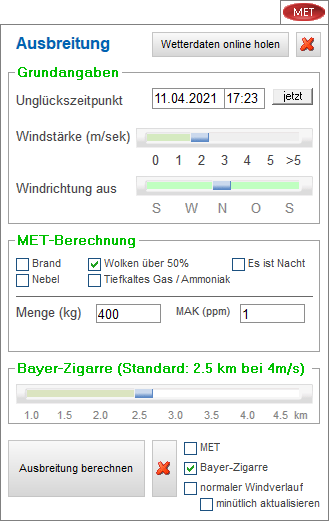 2) Vertretbar schnell, weitere Daten über Schadstoff erforderlich: MET-Ausbreitungsmodell