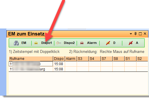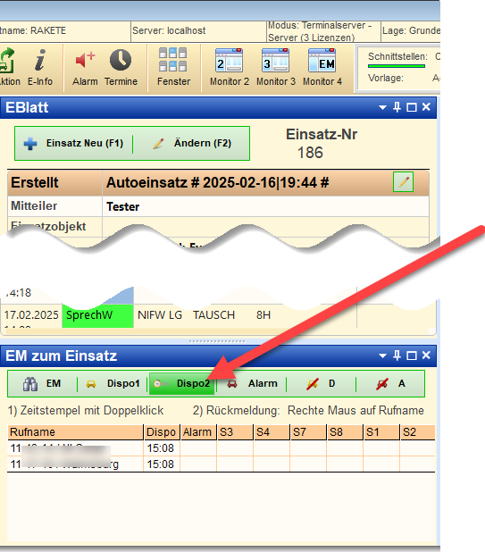 Das Dispofenster öffnet man über die Button Dispofenster im Fenster EM zum Einsatz.