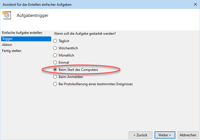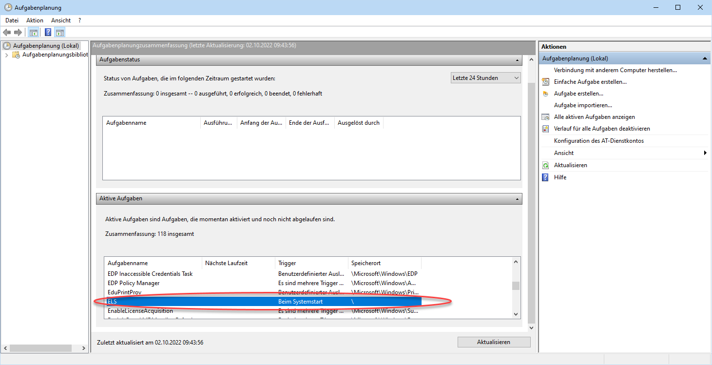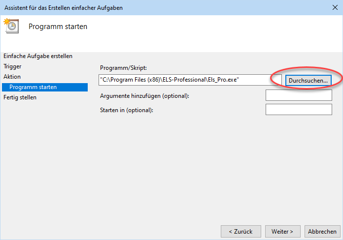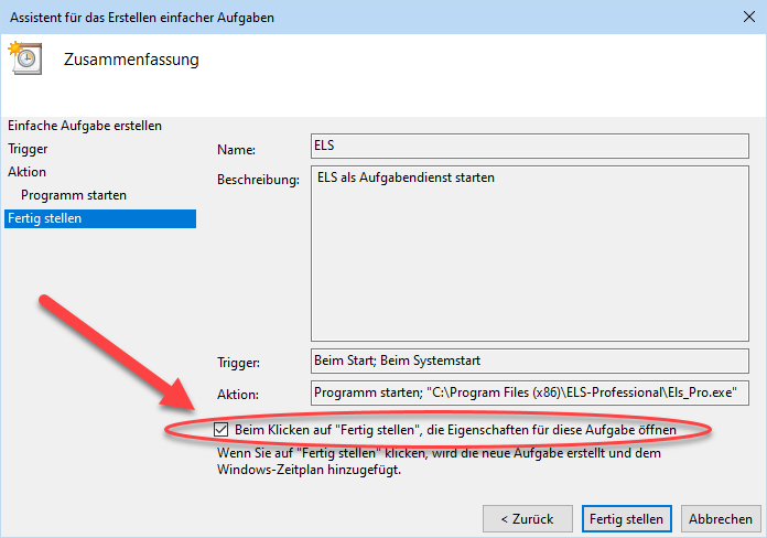 Mit der Aufgabenplanung kann ELS-Professional auf einem Terminalserver beim Computerstart im Hintergrund gestartet werden.