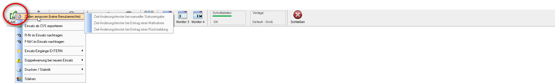 Sind dann dem Benutzer in der Benutzerverwaltung die Rechte erteilt, sind beim Anlegen eines neuen Einsatzes die Felder für Datum/Uhrzeit beschreibbar.