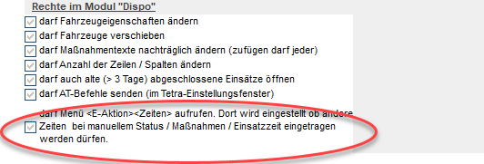Für jeden Benutzer ist in der Benutzerverwaltung (Menü BenutzerBenutzerverwaltung Benutzer neu/ändern) durch den ELS-Administrator einstellbar, ob er Zeiten manipulieren darf. Dies betrifft die Zeiten für