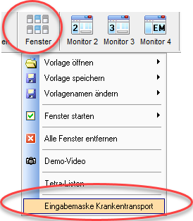 Separate Eingabemaske für den Krankentransport