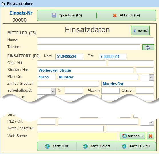 Diese Maske wird nicht automatisch geschlossen, wenn ein Einsatz erzeugt wurde. Sie kann ständig geöffnet bleiben.