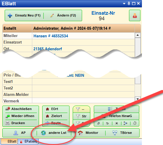 Fremde Leitstelle ist die Leitstelle, die den Einsatz erhalten soll. ELS erkennt automatisch, ob