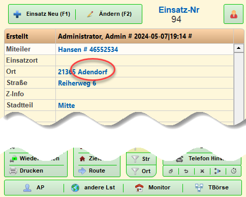 Die Zuordnung ist einfach: Die übergeordnete Leitstelle trägt im Feld "Ort" einen Namen ein: