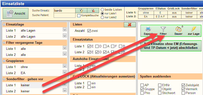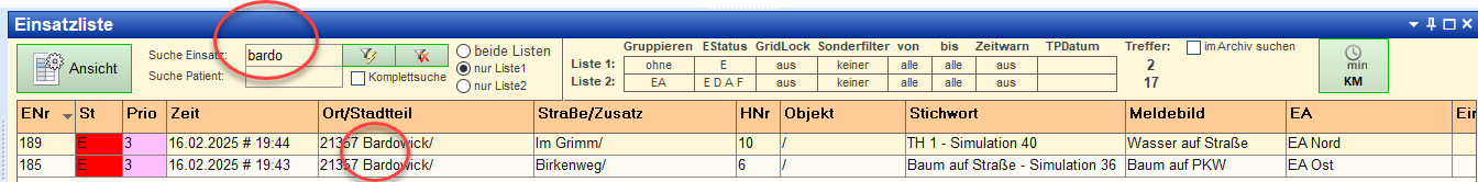 Im manuellen Filter wird in allen Einsatzdaten inkl. Rufnamen der eingesetzten Einsatzmittel gesucht: