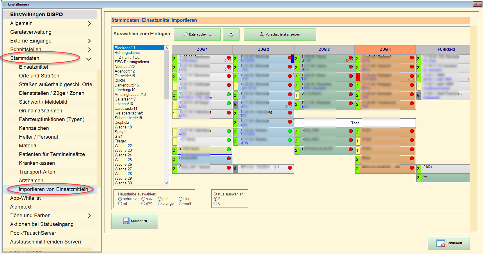 Es können bis zu 3000 Einsatzmittel importiert werden. Vermutlich werden die Einsatzmittel dann noch nicht an den gewünschten Stellen in der Favoritenübersicht stehen. Sie können/müssen dann manuell per Drag&Drop verschoben werden.