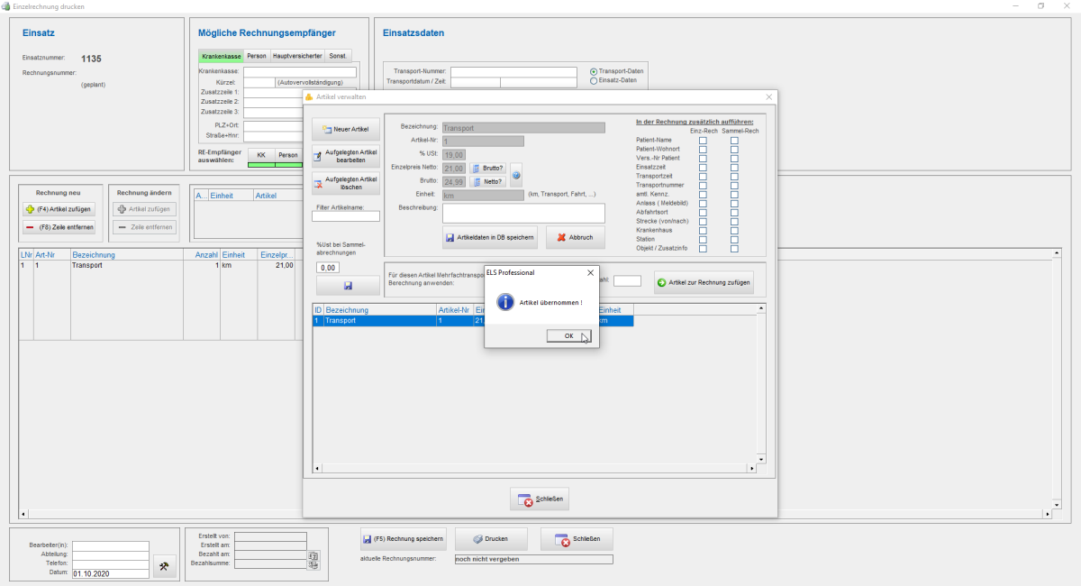 Nachdem der Einsatz zur Rechnung frei gegeben worden ist, kann eine Rechnung erstellt werden:
