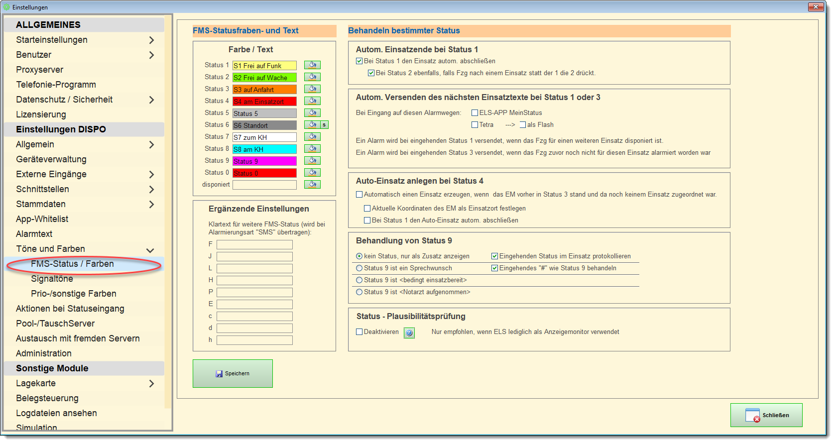 In ELS-Professional können die Statusfarben für die Einsatzmittelübersicht frei definiert werden: