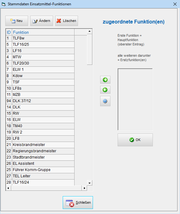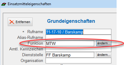 Jedes Einsatzmittel kann eine oder mehrere Funktionen haben. Die Verwendung ist wie folgt: