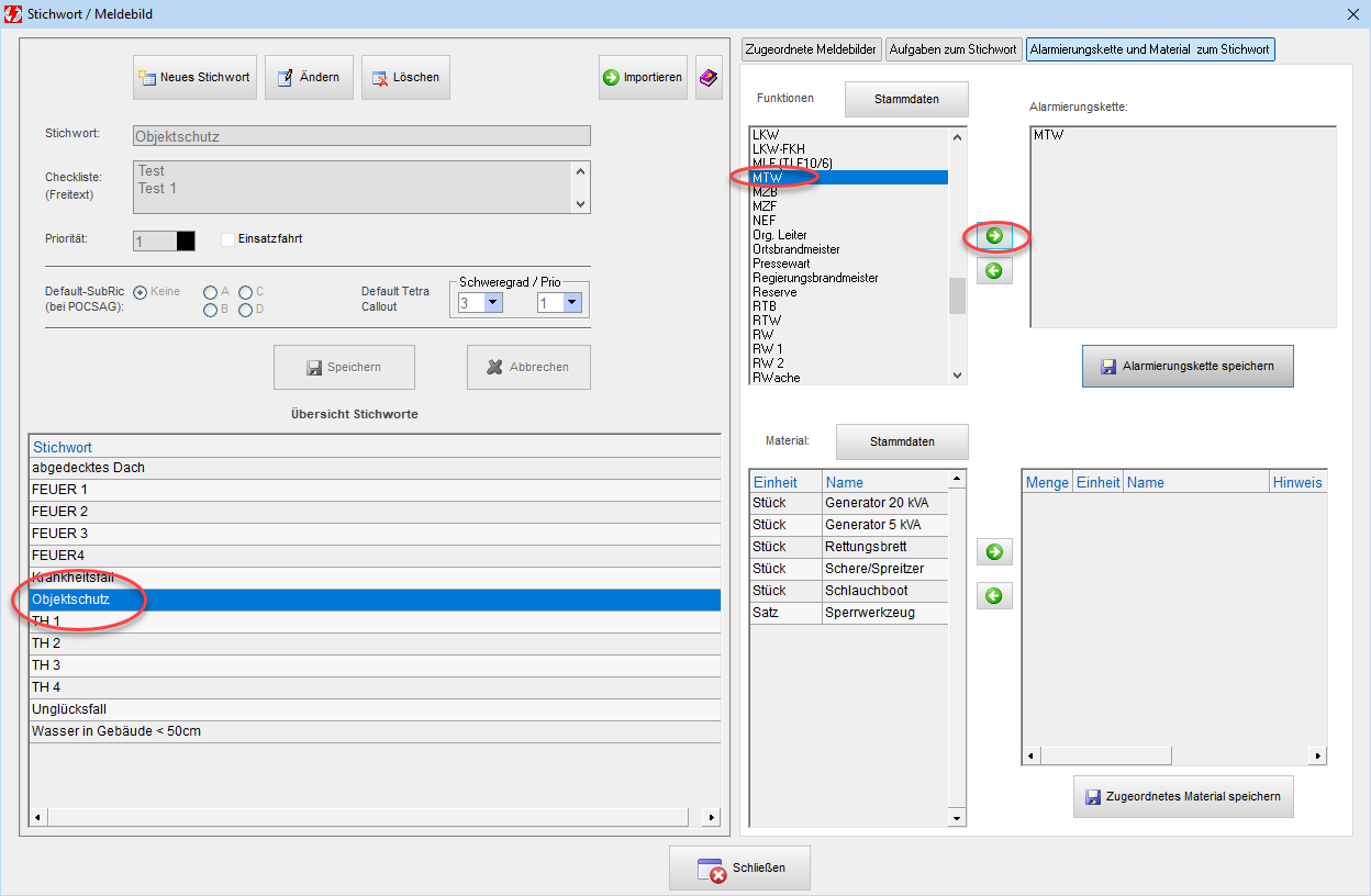 - Erstellen einer Einsatzmittelkette bei der zu einem Stichwort bestimmte Typen vorgeschlagen werden sollen