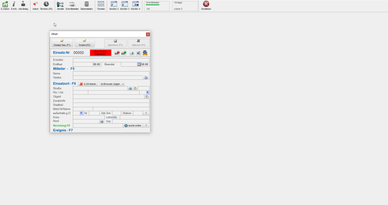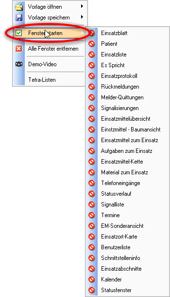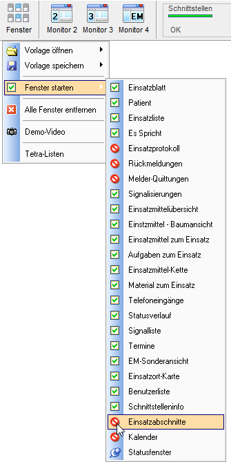 Wenn ein Fenster (hier am Beispiel: Einsatzabschnitte) über das rechte "x" geschlossen wird, kann es erneut gestartet werden.