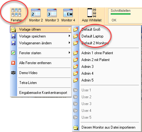 Im Menü Fenster können entsprechende Vorlagen geladen / neu erzeugt / gespeichert werden.