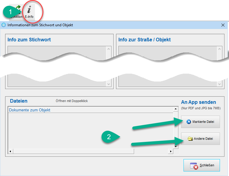 Entweder kann eine Datei, die zum Objekt des aufliegenden Einsatzes hinterlgt ist oder eine beliebige andere Datei an das Mobilgerät übertragen werden.