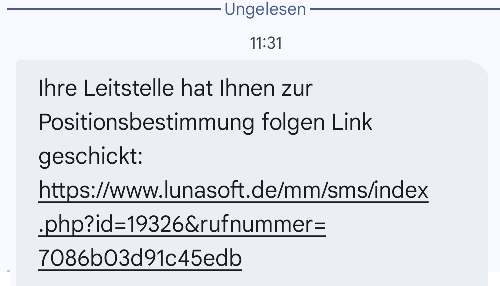 zuzusenden. Beim Öffnen des Links ermittelt das Mobiltelefon seine Koordinaten und sendet diese an ELS-Professional. Dort können sie direkt auf der Lagekarte angezeigt werden. Zum Versenden einer SMS reicht es aus, wenn ein Vertrag mit einem Anbieter besteht, der in ELS-Professional unterstützt wird und dessen Zugangsdaten erfasst sind.