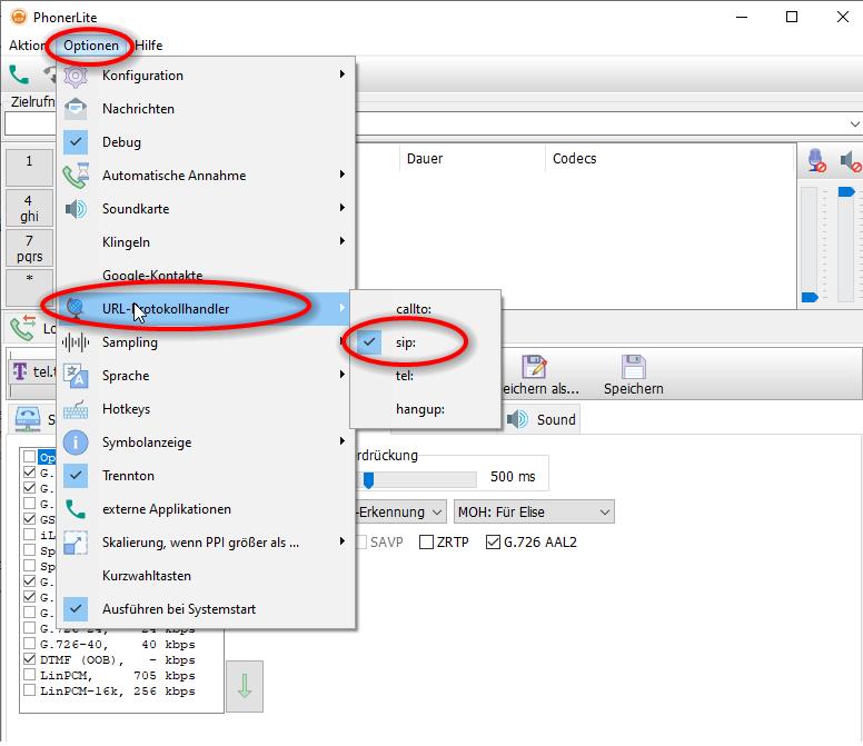 Einstellungen in ELS, damit man von von ELS aus einen Anruf einleiten kann