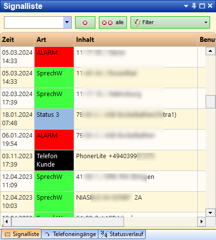 Sollte mehrere Disponenten für jeweils unterschiedliche Aufgaben zuständig sein, können einzelne Signalarten ausgeblendet werden.