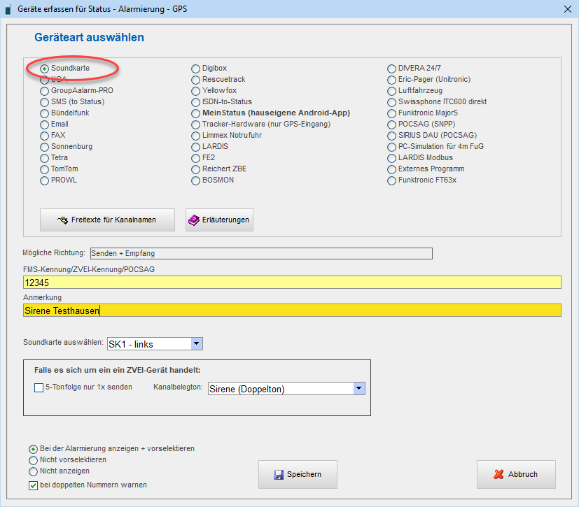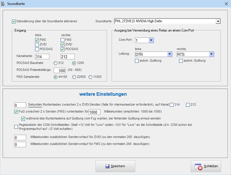 Ist nur ein FuG angeschlossen, so sollte nur entweder rechts oder links dekodiert werden. Ansonsten dekodieren beide Kanäle der Soundkarte das Signal und ELS-Professional geht davon aus, dass 2 unterschiedliche Signale auszuwerten sind.