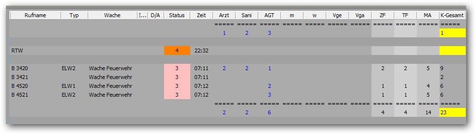 In den Kräfteübersichten in der dynamischen Einsatzmittelübersicht und in der Sonderlage könnte das dann so aussehen: