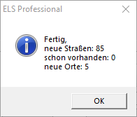 sollte aktiv sein, wenn man sich nicht sicher ist, ob eine Straße schon enthalten ist. Eine Doppelprüfung verlangsamt den Import bei großen Dateien.