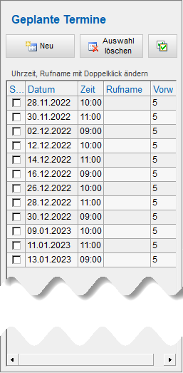 - Mit Doppelklick auf die Zeile „Rufname“ kann die Vorwarnzeit geändert werden