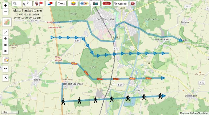 Flächen, Kreise, Polygone, Linien (Pfeile)
