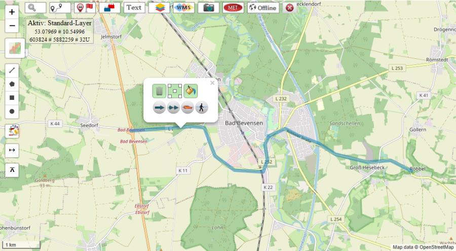 1. Beim Erstellen: gewünschte Eigenschaft einstellen, das Element auswählen (Kreis/Rechteck/Linie/Polygon) und auf der Karte erstellen