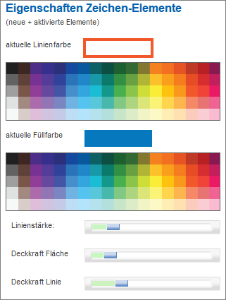 Die Eigenschaften der grafischen Elemente können eingestellt werden: